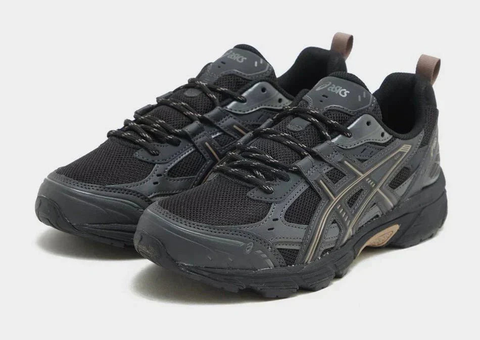 Diese schwarzen ASICS GEL-NUNOBIKI Damen-Sneaker mit taupegrauen Akzenten sind von Trailrunning-Schuhen der 2000er-Jahre inspiriert. Das atmungsaktive Mesh-Obermaterial mit matten und seidenmatten Synthetik-Overlays bietet guten Halt. Die GEL-Technologie in der Ferse sorgt für stabile Dämpfung, und die Gummiaußensohle gewährleistet optimale Traktion. Dank der Zuglasche lassen sich die Schuhe leicht an- und ausziehen. Das ASICS-Logo ist ebenfalls vorhanden.