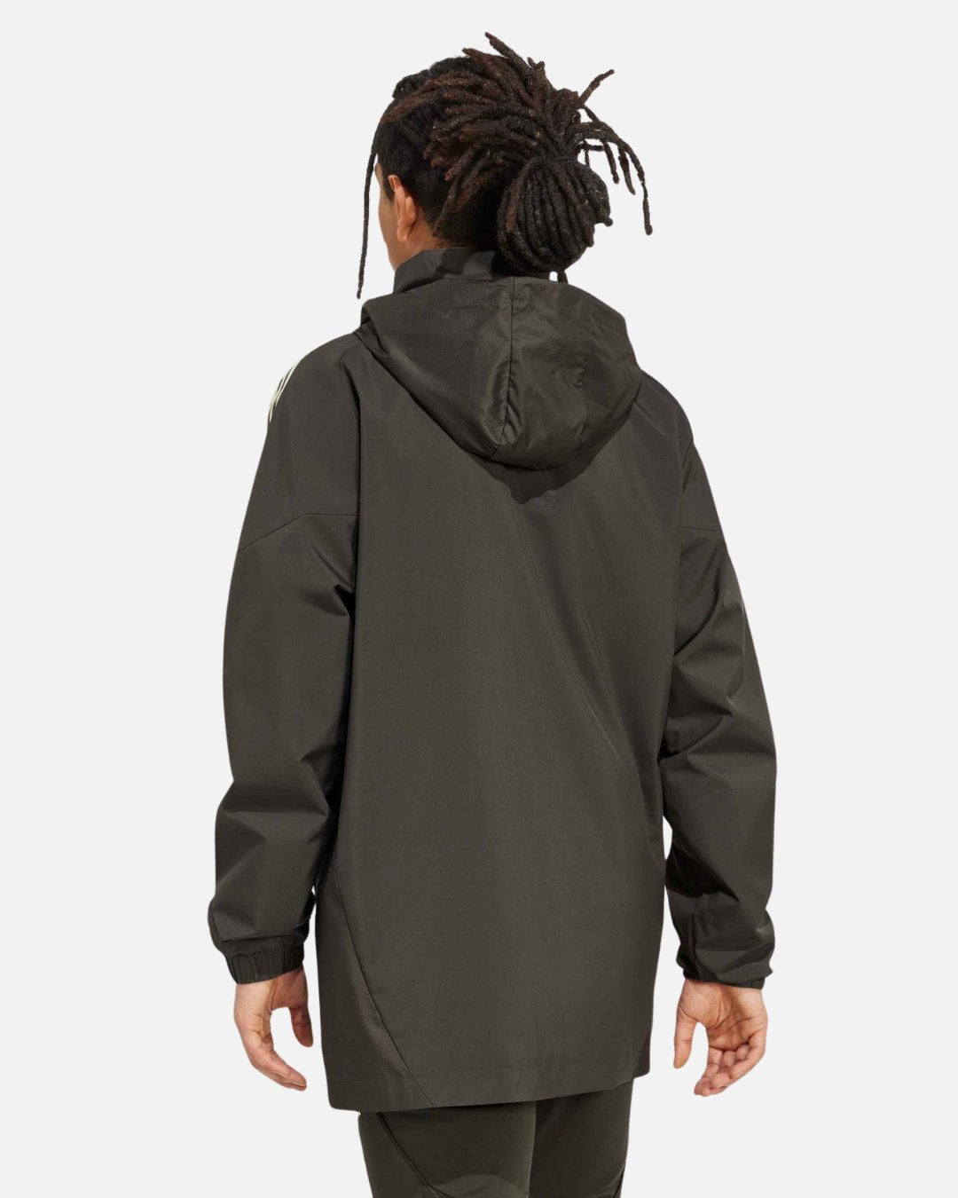 Zeig deine Unterstützung für Real Madrid auch bei Wind und Wetter mit der khaki-grünen Windjacke 2025/2026. Sie ist perfekt für windige Bedingungen geeignet und vereint Stil und Funktionalität mit verstellbarer Kapuze, durchgehendem Reißverschluss und wasserabweisendem Material. Vereinswappen und die ikonischen Adidas 3-Streifen runden den sportlichen Look ab. Ideal für Training und Alltag.